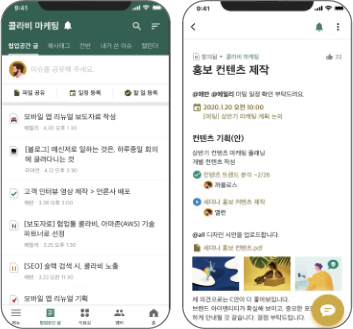 많은 업무를 동시에 진행할 때 유용한 간트차트를 제공하는 콜라비는 협업툴 시장이 활성화되던 해외에서부터 인정받은 협업툴입니다. 2016년 구글 스타트업 그린드(Google Startup Grind)에서 우승하며 10만 이상의 회사와 팀이 이용하고 있죠. 실시간으로 여러 명의 작업자가 한 문서를 함께 작성할 수 있고 ‘뉴스피드’에서 업데이트 항목과 내가 작성한 문서를 볼 수 있어 시간 절약에 유용합니다. 단체 채팅으로 업무를 처리한다면 내 업무와 연관관계를 찾는 것에도 시간이 걸리는데요, 이럴 경우 편리하게 사용할 수 있습니다. 자체 암호화로 이중 보안이 된다는 이점도 있습니다.