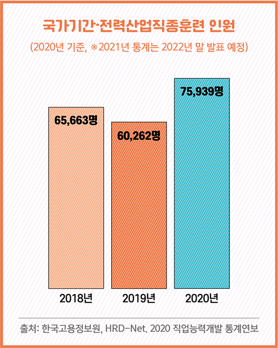 1995년 7월 고용보험법에 의한 직업능력개발사업이 도입된 이후 직업훈련에 대한 교육은 평생직업능력개발로 확대되고 있습니다. 직업능력개발훈련을 받고자 하는 사람들도 늘고 있습니다.