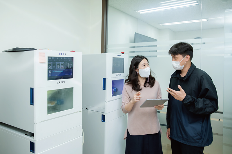 이 외에도 매년 자체적으로 팀별 목표를 설정하고 성과와 매출액에 따라 인센티브를 지급하며 업적을 창출하는 인재에게 스톡옵션을 부여하는 등 모든 직원이 회사의 성장을 위해 동기 부여할 수 있는 다양한 제도가 마련되어 있습니다. 이런 덕분에 디오에프연구소의 46명 직원 중 청년 재직자는 32명이나 됩니다. 5년 이상 회사에 몸담은 직원도 13명으로 전체 직원의 30%에 육박합니다.