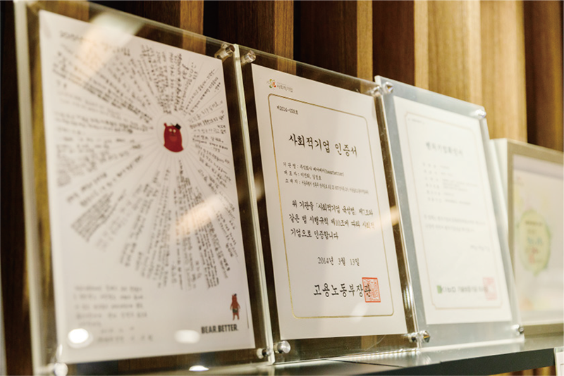 첫해 7,000만 원으로 시작한 베어베터는 코로나 직전인 2019년까지 89억 원의 매출액을 달성했습니다. 회사 설립 초기 5곳에 불과했던 고객사가 약 400곳까지 불어났습니다. 그동안 SK·CJ·네이버·카카오·IBM·대웅제약·로레알·KT·신한은행·카이스트·고려대 등 각 분야를 대표하는 기업과 기관이 베어베터와 손잡았습니다. 기업들은 단순히 사회공헌활동만으로 베어베터와 거래하지 않습니다. 베어베터가 다양한 기업과 협업하는 이유는 특별합니다.