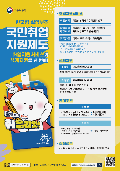 정부는 지난 9월 7일 국무회의에서 『구직자취업촉진 및 생활안정지원에 관한 법률(이하 구직자취업촉진법)』 일부개정법률안을 심의·의결하였습니다. 이번 안은 한국형 실업부조인 국민취업지원제도를 고도화하는 국정과제의 일환으로서, 현장의견 등을 토대로 ’21년 제도 시행 후 그간의 운영상 미비점 등을 보완하고자 추진되었습니다. 대표적으로 현재 월 54만 9000원 이상 소득 발생시 구직촉진수당을 지급정지하고 있으나, 이로 인해 생계를 위한 취업활동을 과도하게 위축시키는 문제가 있었기에 이에 일정 수준 이상의 소득이 발생한 경우 구직촉진수당을 지급정지하는 방식 대신 소득수준에 따라 일부 감액하는 방식으로 개선해, 참여자들이 일자리를 탐색하면서 안정적인 생계유지활동이 가능하게 되어 향후 취업에 긍정적인 영향을 미칠 것으로 예상됩니다. 또한 청소년부모 등 15~17세 구직자가 구직활동시 안정적으로 생계 유지할 수 있도록 소득요건 특례가 적용되는 연령 범위를 18~34세 이하에서 15~34세 이하로 확대하는 내용의 법적 근거를 마련할 계획입니다. 이 밖에 현재는 취업지원서비스기간(통상 1년, 추가 6개월 연장가능) 내에 취업한 경우에만 재참여 제한기간을 단축(3년→1~2년)하고 있으나 사후관리 기간에 취업한 자도 재참여 제한 기간을 동일하게 단축하며, 부정수급.오지급에 대한 반환금이나 추가징수금을 납부해야 하는 자의 신청이 있는 경우 분할하여 납부하게 하거나 추가로 받을 수 있는 구직 촉진수당을 반환금 등에 충당할 수 있도록 추진합니다. 아울러 고용노동부는 전국 고용센터에서 취업에 애로를 겪는 분들에게 직접 찾아가는 홍보를 실시합니다. 10월 21일까지 취업상담 커피트럭이 전국 24개 대학, 채용박람회, 여성일자리박람회 및 주요 마트, 공원, 도서관 등을 방문해 1만 4300명을 대상으로 취업상담과 함께 커피차 응원을 진행합니다. 또한 10월 31일까지 친구추천 챌린지를 통해 취업 준비중인 많은 국민에게 국민취업지원제도를 알리는 홍보도 진행됩니다. |