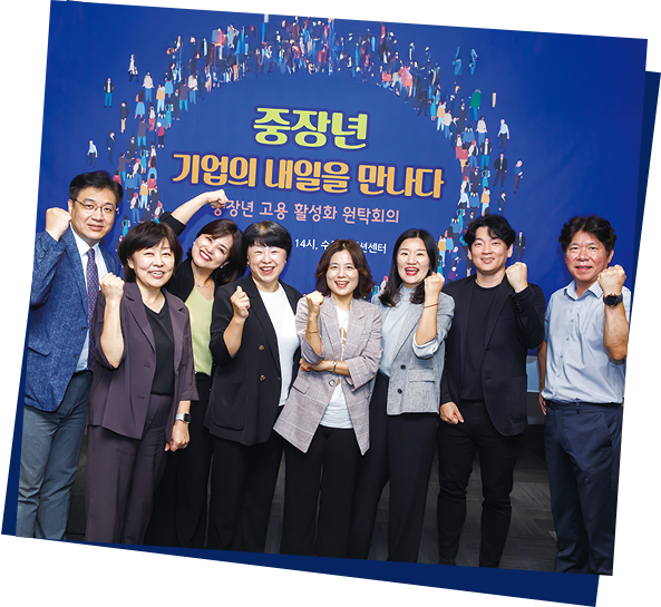 “행사를 준비하면서 가장 많이 고민한 부분은 참석자였습니다. ‘어떤 분들의 의견을 들어야 정책 지원이 효과적으로 전파될 수 있을까?’, ‘중장년에 대한 인식 전환과 정년 연장 등 지속 가능한 고용 환경을 조성할 수 있을까?’ 고민했죠. 의견 경청 못지않게 해결책을 제시하는 것도 중요했고, 다양한 목소리들이