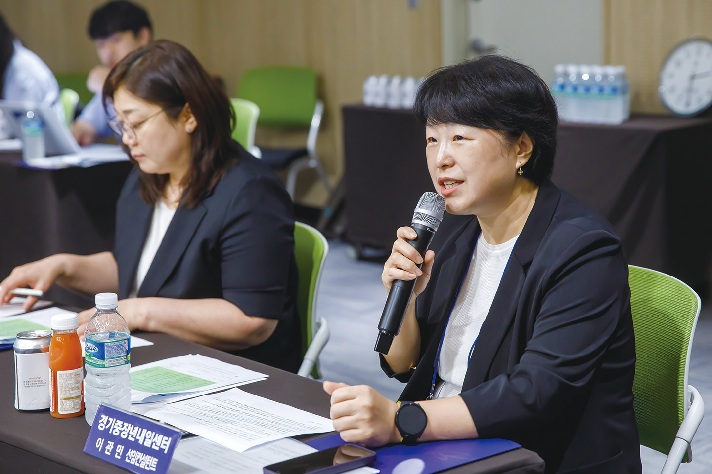 수원컨벤션센터 회의실에서 진행된 회의에는 중장년 재직자·구직자 뿐만 아니라 11개사 기업 담당자, 인천·안산·평택·용인·화성중장년내일센터와 노무사 등 총 43명이 참석했다.