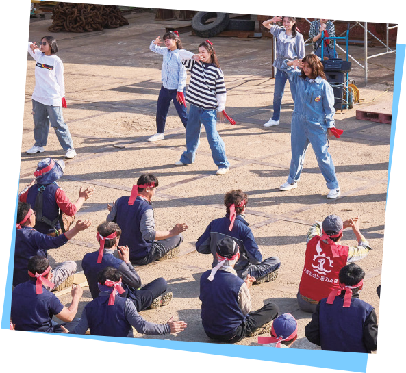 현장에 초대받아, 노동자들과 함께 춤을 추게 된다.