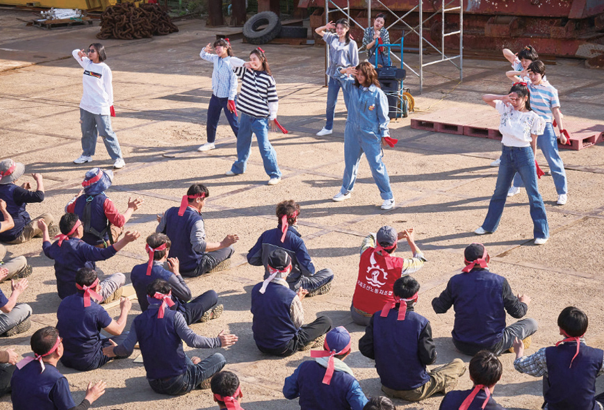 이 과정에서 영화는 조선소 비정규직으로 일하는 아버지들과 상고에 다니는 딸들의 얼굴을 한 프레임 안에 담아낸다. 그들은 서로를 응원하고, 때로는 연대한다. 묵묵히 하루하루를 살아내는 것만으로도 당신이 받을 박수는 충분하다는, 담담하지만 힘 있는 메시지가 전해진다. 타인을 응원하던 밀레니엄 걸즈 역시 점차