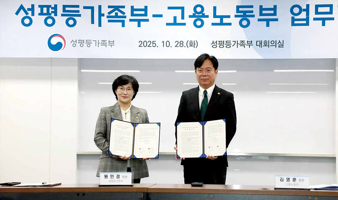 고용노동부와 성평등가족부는 10월 28일 정부서울청사에서 고용평등 및 여성고용노동정책 활성화를 위한 업무협약(MOU)을 체결했다. 이번 협약은 정부조직법 개정으로 일부 여성 고용정책이 고용노동부에서 성평등가족부로 이관됨에 따라, 정책의 연속성과 현장지원의 안정성을 확보하기 위해 마련됐다. 양 부처는