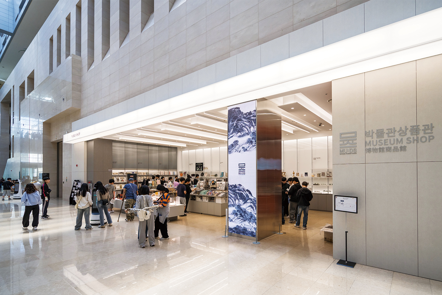 상설 전시실을 모두 돌아봤다면, 이제 국립중앙박물관에 왔으면 꼭 들러야 한다는 박물관 상품관에 들러보자. 박물관의 ‘museum’과 상품 ‘goods’를 합성한 신조어 ‘뮷즈’를 파는 공간으로, 오픈런을 할 정도로 인기니 말이다. BTS 멤버 RM이 소장해 화제가 된 반가사유상 미니어처부터 차가운 음료를
