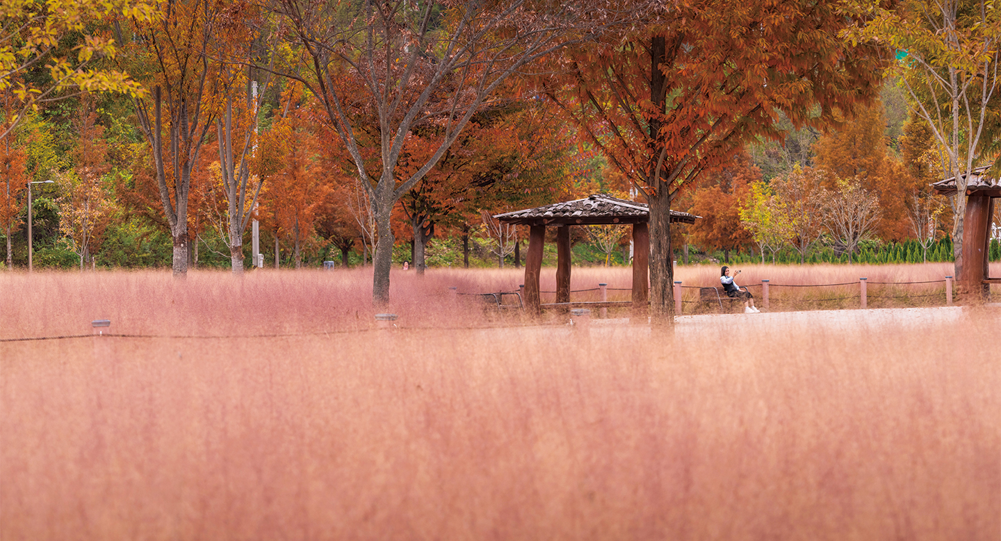 사이로 피어난 핑크뮬리가 눈에 가득 담기는데, 그림 같다는 표현이 아깝지가 않을 만큼 장관이다. 특히 국내 최대 규모로 더 유명해졌다. 천천히 산책로를 따라 걷다 보면 가을의 한복판에 들어와 있는 느낌이 든다. 여기서는 사실 이렇게 천천히 걷다가, 마음에 드는 풍경에 멈춰서 사진을 찍어도 좋고, 벤치에 앉아