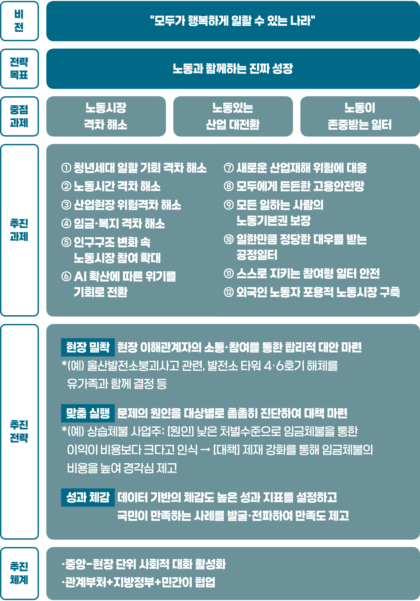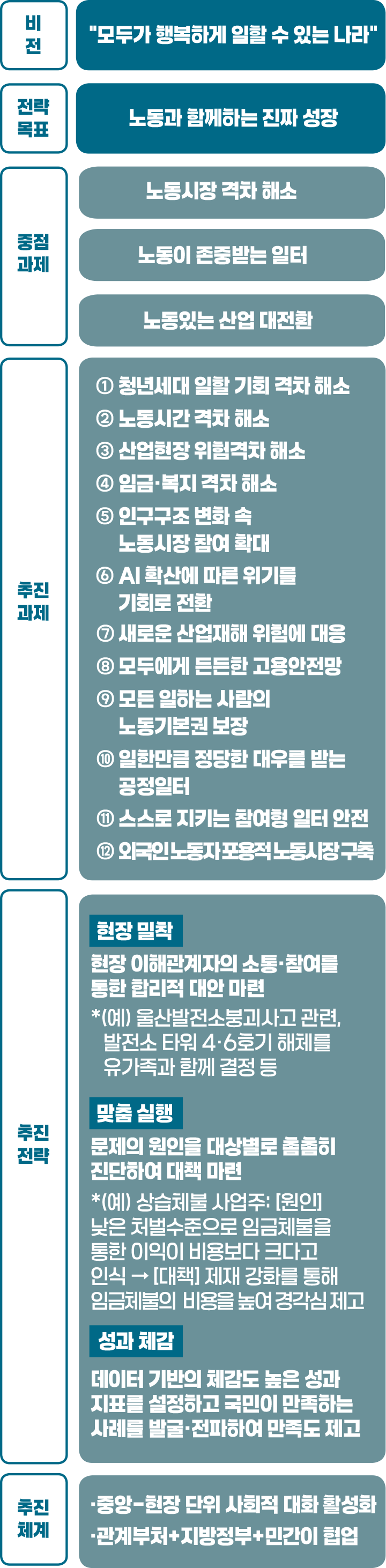 특히 “노동과 함께하는 진짜 성장”을 강조하며 정책 설계 단계보다 집행과 현장 체감에 중점을 뒀다.