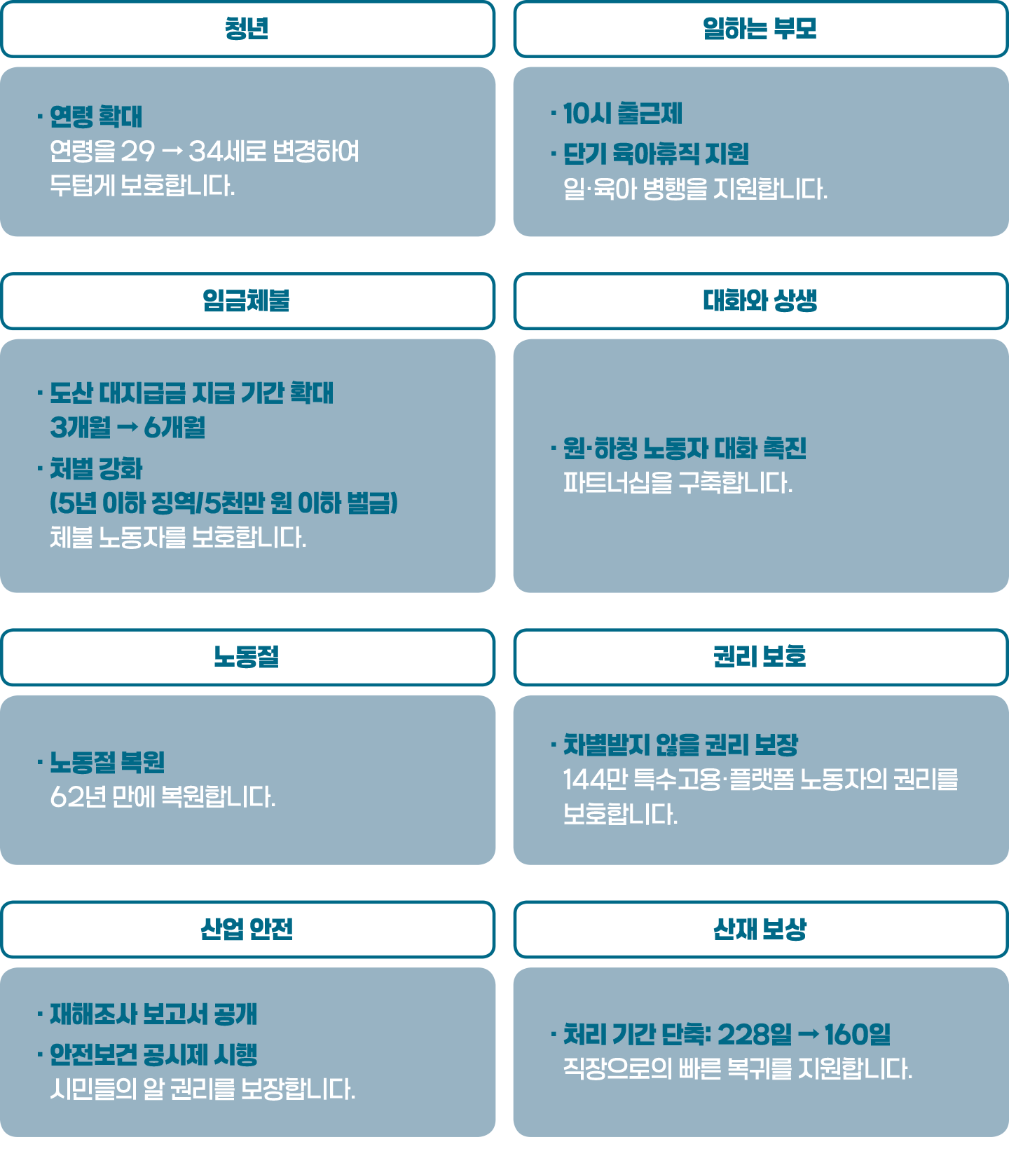 “노동과 생명을 존중하는 정책 기조로 과감히 전환했다”고 밝혔다.