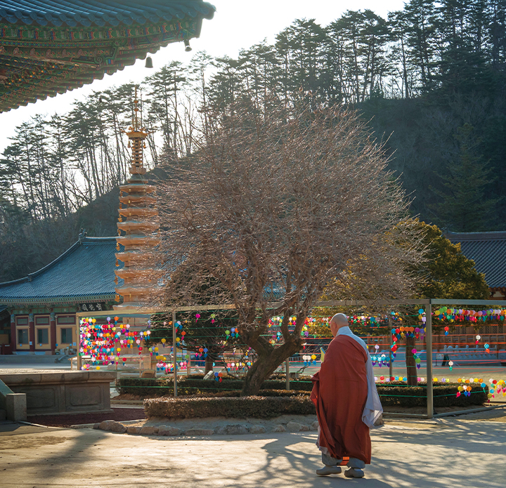 고요한 월정사 내부를 걷다 보면, 새롭게 짓는 시설과 기도를 드리는 법당 적광전, 범종의 풍경이 오대산의 경치와 함께 어우러진다. 고요하면서도 맑은 기운이 감도는 이곳에서 조금 더 오래 머무르고 싶다면, 월정사 템플스테이를 신청해 보는 것도 방법. 사찰 뒤편에 넓게 마련된 월정사 템플스테이는 전국에서도