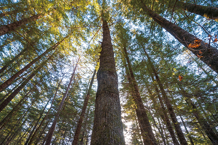 월정사 투어는 사찰을 둘러보는 데서 끝나면 안 된다. 일주문부터 금강교까지 이어지는 전나무숲길은 광릉 국립 수목원(경기 포천시)의 전나무숲, 변산반도 국립공원 내소사(전북 부안군)의 전나무숲과 함께 우리나라의 3대 전나무숲으로 손꼽히는 곳이다. 약 1km의 거리에 쭉 뻗은 전나무가 숲을 이뤄 오고 가는