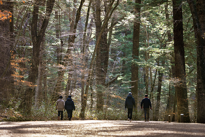 이곳을 향유하는 방법은 간단하다. 숲길을 따라 걸으며 자연과 교감하는 것. 천천히 걷다가 숲 중간에 마련된 쉼터에 앉아 쉬어도 좋고, 벤치에 앉아 오대천의 맑은 물소리를 들어도 좋다. 날씨가 따뜻한 계절에는 황톳길을 맨발로 걷는 체험도 가능하다. 걷다가 운이 좋으면 다람쥐나 새를 만날 수도 있고, 2006년