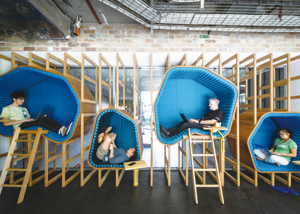 구글은 미국 본사를 비롯한 일부 캠퍼스에 낮잠 전용 공간을 마련했다. 암막 커튼으로 빛을 차단하고, 빈백과 소파가 놓인 이 공간에는 MetroNaps의 첨단 수면 파드도 설치되어 있다. 직원들은 부서와 직무에 따라 자율적으로 이 공간을 이용할 수 있으며, 유연근무제와 통합 운영되어 개인의 컨디션에 맞춰 휴식을 취할 수 있다. 수면 과학에 기반한 파드 기술과 자율적인 기업 문화를 결합한 사례다.