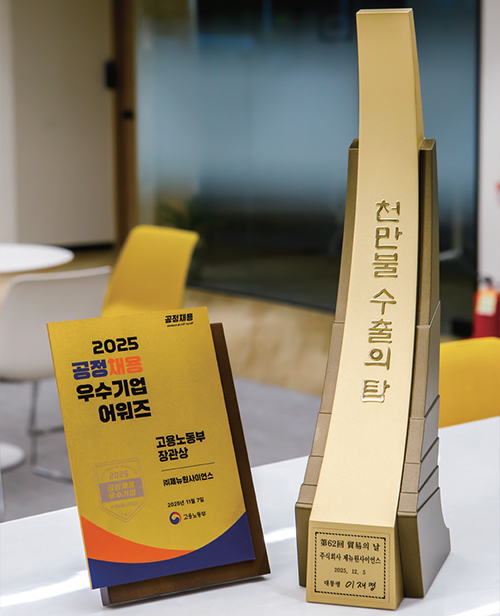 궁극적으로 제약업계를 선도하는 공정 채용의 롤모델 부상이 목표라고 밝힌 신기준 팀장과 김초롱 대리가 자신 있게 미소 짓는다. 인재경영의 백년지대계를 공고히 구축해 나가는 제뉴원사이언스의 미래가 자못 눈부시다.