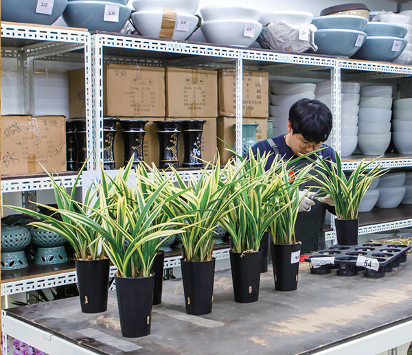 “예를 들어 플라워 팀이 하는 업무 중에서 화환은 일정한 규칙을 훈련하면 상품 제작까지 가능해요. 반면 꽃다발은 꽃 종류부터 상당히 많은 데다 색상 조합까지 신경 써야 하는 영역이기에 한계가 있다고 여겼지요. 그런데 전문 플로리스트와 계속해서 같이 작업하면서 즐겁게 기술을 내재화하다 보니 어디 내놓아도 손색없는 수준으로 발전했습니다.”