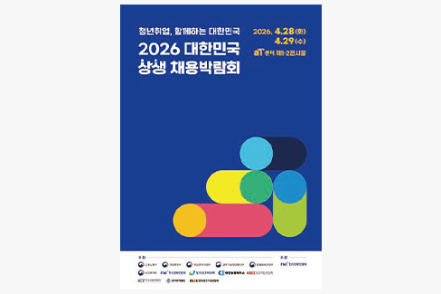 고용노동부는 2026년 4월 28일부터 29일까지 서울 양재 aT센터에서 관계부처와 경제단체와 함께 ‘2026 대한민국 상생 채용박람회’를 개최한다. 이번 행사는 청년 취업 지원과 고용시장 활성화를 위해 마련되었으며, 대기업 협력사와 중견·중소기업, 스타트업, 글로벌 기업 등 약 700개 기업이 온·오프라인으로 참여한다. 3월 19일부터 공식 홈페이지를 통해 참가 신청과 온라인 채용 접수가 시작되며, 온라인 채용관은 7월까지 운영된다. 현장에서는 채용상담, 면접, 취업특강, 커피챗 등 다양한 프로그램이 제공되고 참가비는 무료다.