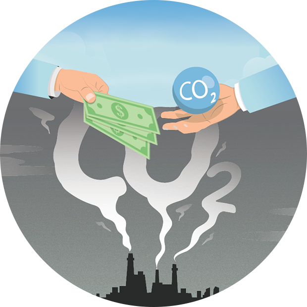 많은 나라에서는 배출권거래제(ETS, Emissions Trading System)를 시행하고 있다. 정부는 기업이 배출할 수 있는 온실가스의 총량을 정하고 배출권을 나눠 준다. 배출량이 기준보다 많으면 배출권을 구매해야 하고, 배출량을 줄이면 남는 배출권을 판매할 수 있다.