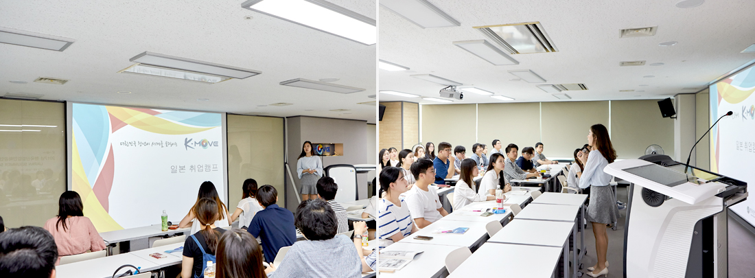 최근 일본 기업들의 구인난이 이슈화되면서 한국 청년들의 일본 진출이 지속적으로 늘어나고 있는 상황입니다. 특히 이전에는 일본 취업이 서비스직과 IT 직종에 한정되었다면 최근에는 종합직과 전문기술직 등으로 취업영역이 확대되어 일본 취업 가능성은 더욱 높아지고 있는 상황인데요, 하지만 국내에는 일본 취업을 준비하려는 청년들을 위한 정보가 부족한 것이 현실입니다. 특히 서류나 면접에서 일본 기업들이 요구하는 부분을 미리 파악하지 못해 실패하는 사례도 발생하죠. 이런 청년들의 요구에 발맞추어 2017년 일본취업캠프를 개최하게 되었는데요, 여름방학 동안 운영되어 보다 많은 구직자들에게 맞춤형 교육을 제공했습니다. 신청은 6월 20일부터 7월 7일까지 대학창조일자리센터, 월드잡 플러스, 한국생산성본부, 잡코리아 등에서 받았고 권역별 50명씩, 총 200명을 모집했습니다. 신청자가 많았기 때문에 면접이나 전화 인터뷰 등으로 신청자들을 추렸다고 해요.